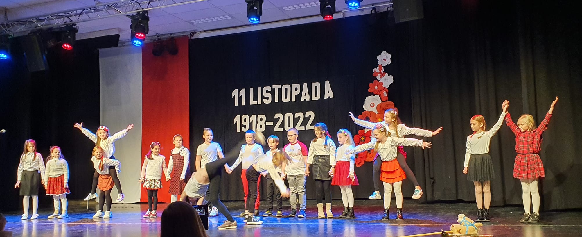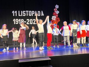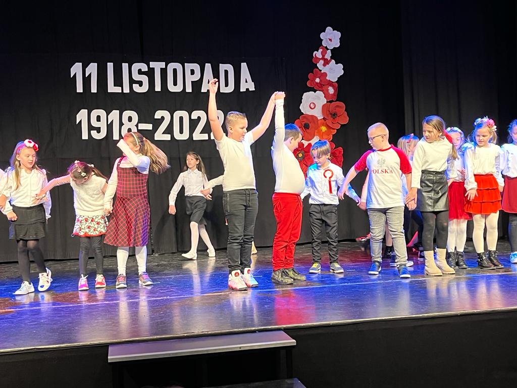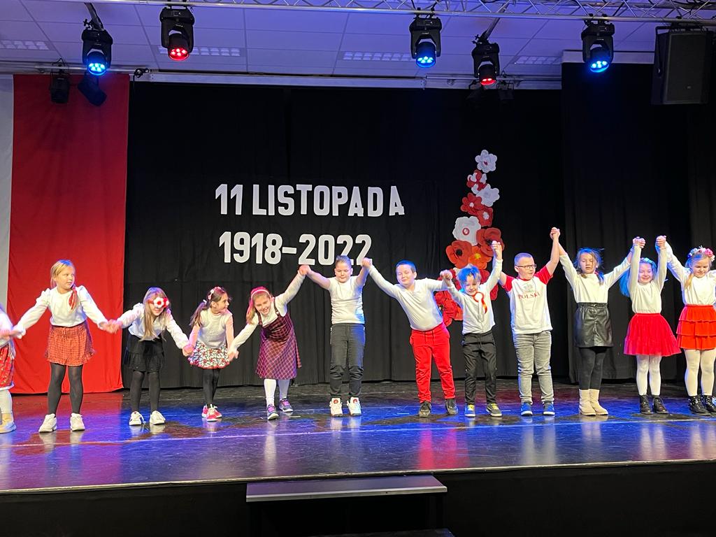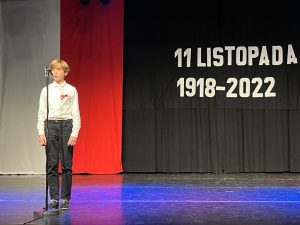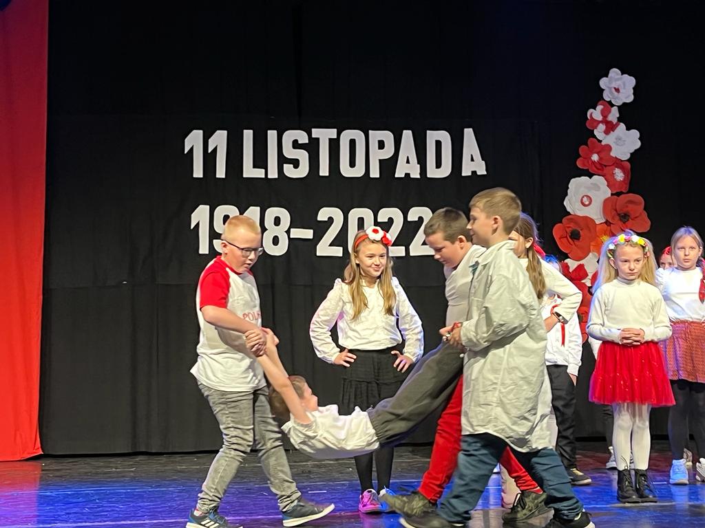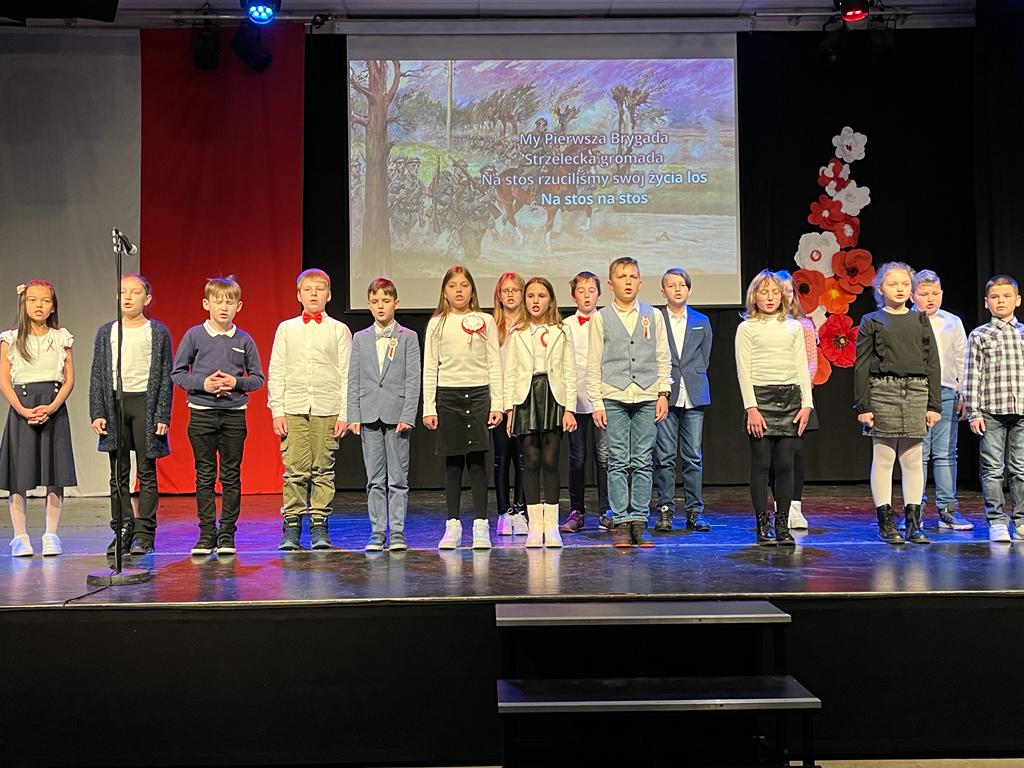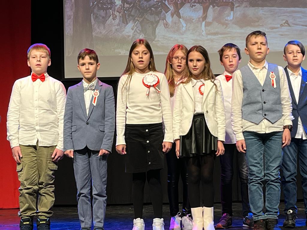Tymi słowami rozpoczęła się 19 listopada uroczystość z okazji 104. rocznicy odzyskania przez Polskę niepodległości. Na montaż słowno-muzyczny złożyły się przepiękne wiersze i pieśni przypominające o tych trudnych dla Polaków czasach w wykonaniu Weroniki Lentner z kl. 3LO, Mateusza Kępki z kl. 7b oraz Wojciecha Kępki z kl. 5b. Klasa 4b zaprosiła wszystkich do wspólnego odśpiewania Marsza Pierwszej Brygady a klasa 3b żywiołowo odtańczyła krakowiaka.