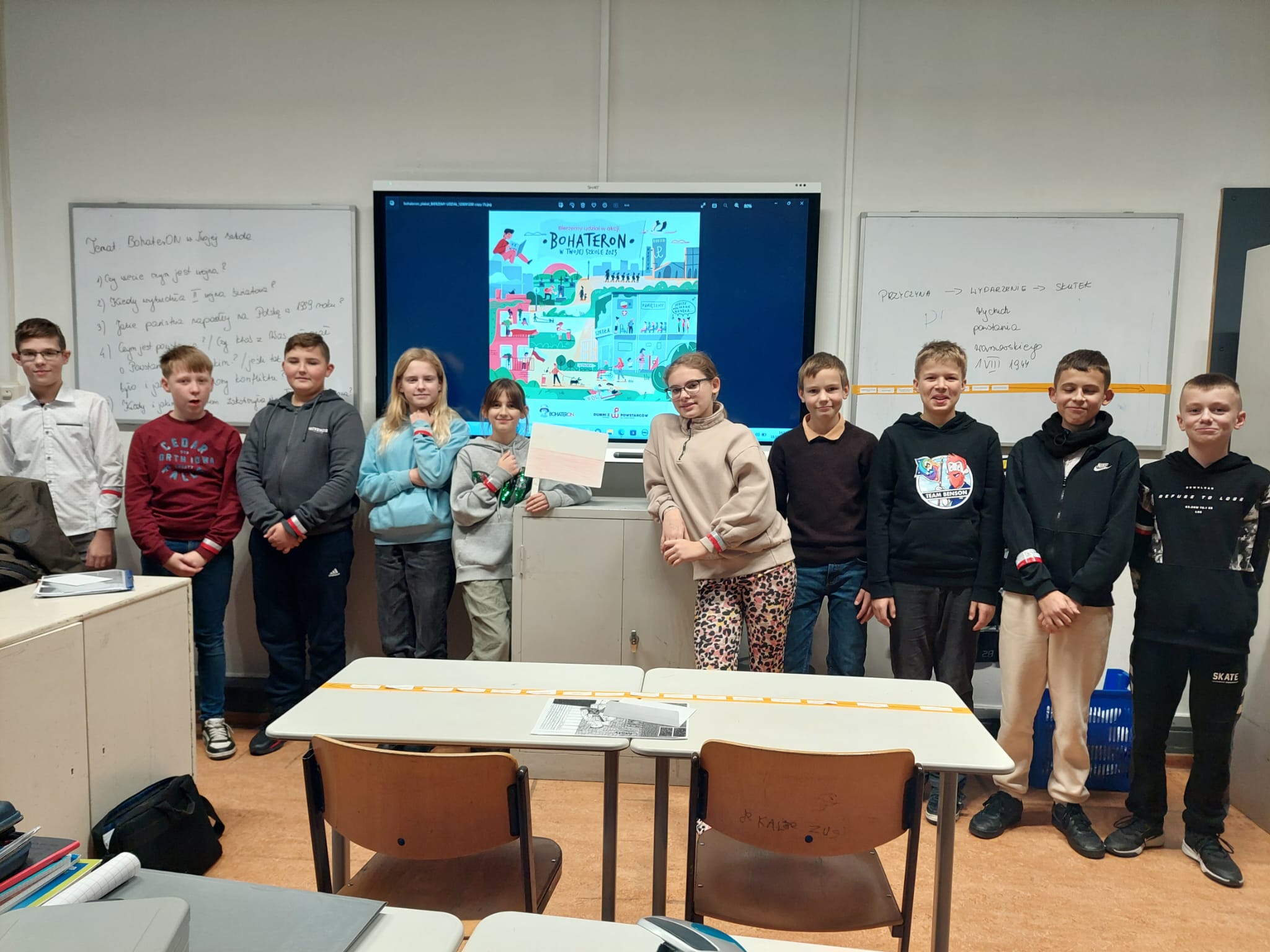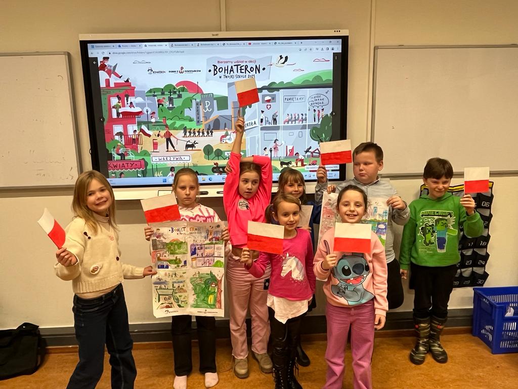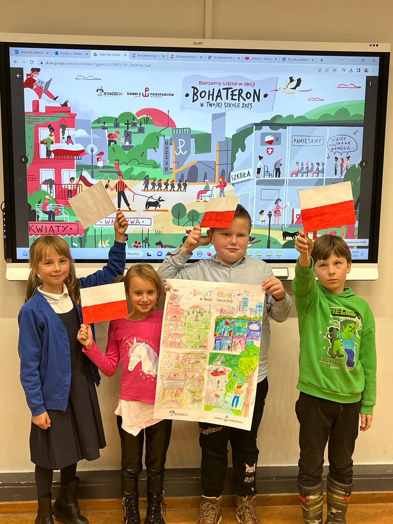 W listopadzie 2023r. nasza szkoła wzięła aktywny udział w akcji „BohaterON. Włącz historię!” Jest to ogólnopolska kampania o tematyce historycznej, mająca na celu upamiętnienie i uhonorowanie uczestników Powstania Warszawskiego oraz promocję historii Polski XX wieku.