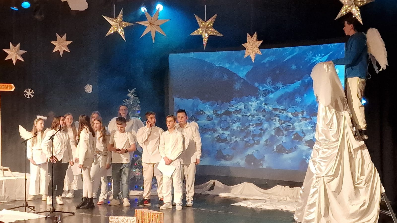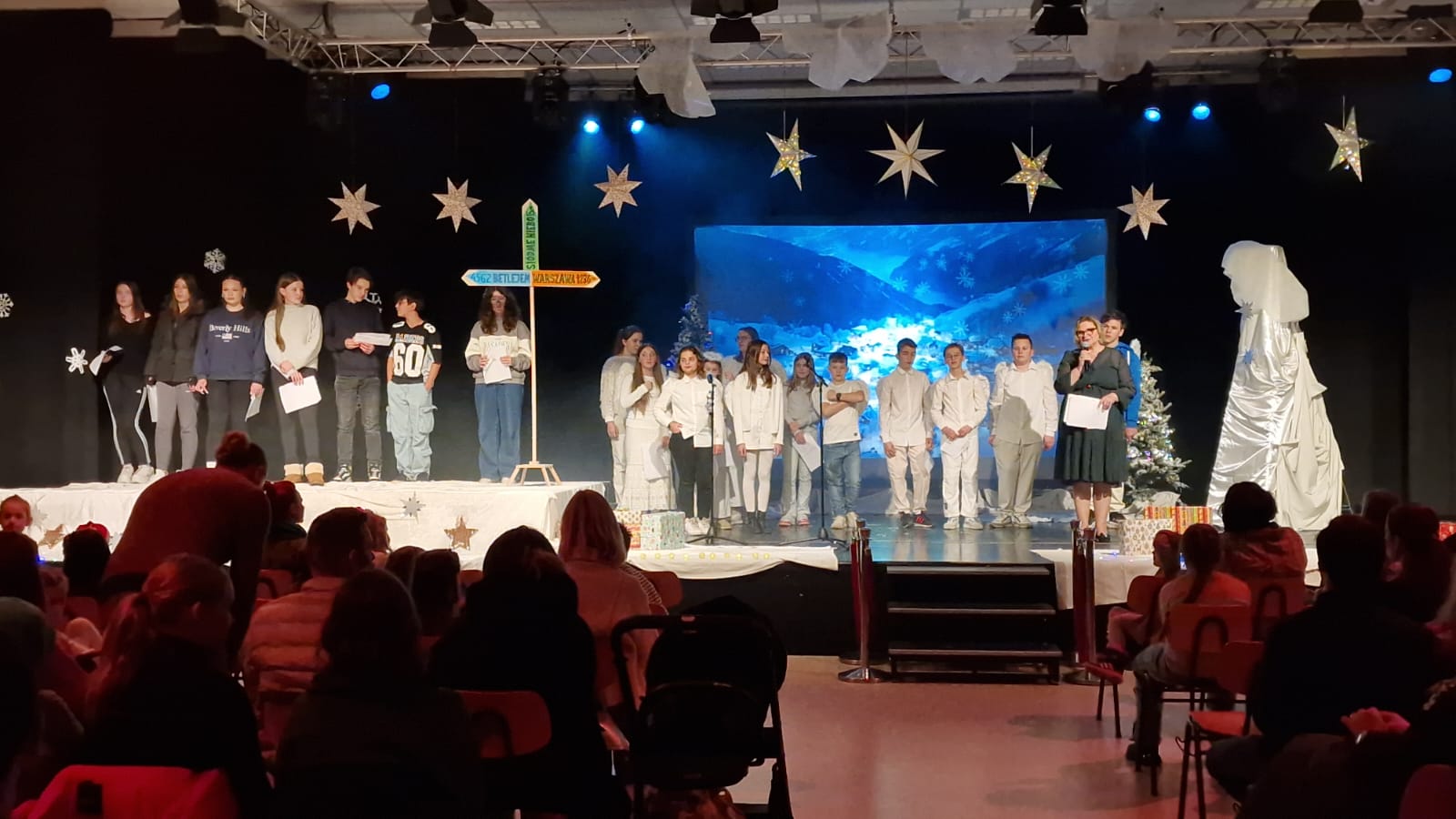 W tym roku w świąteczną atmosferę wprowadzili nas uczniowie klas licealnych, którzy pod okiem nauczycieli przygotowali przedstawienie jasełkowe. Zaprezentowali je 16 grudnia, przypominając w ten sposób wydarzenia sprzed ponad dwóch tysięcy lat, kiedy to w Betlejem narodziło się Boże Dzieciątko.