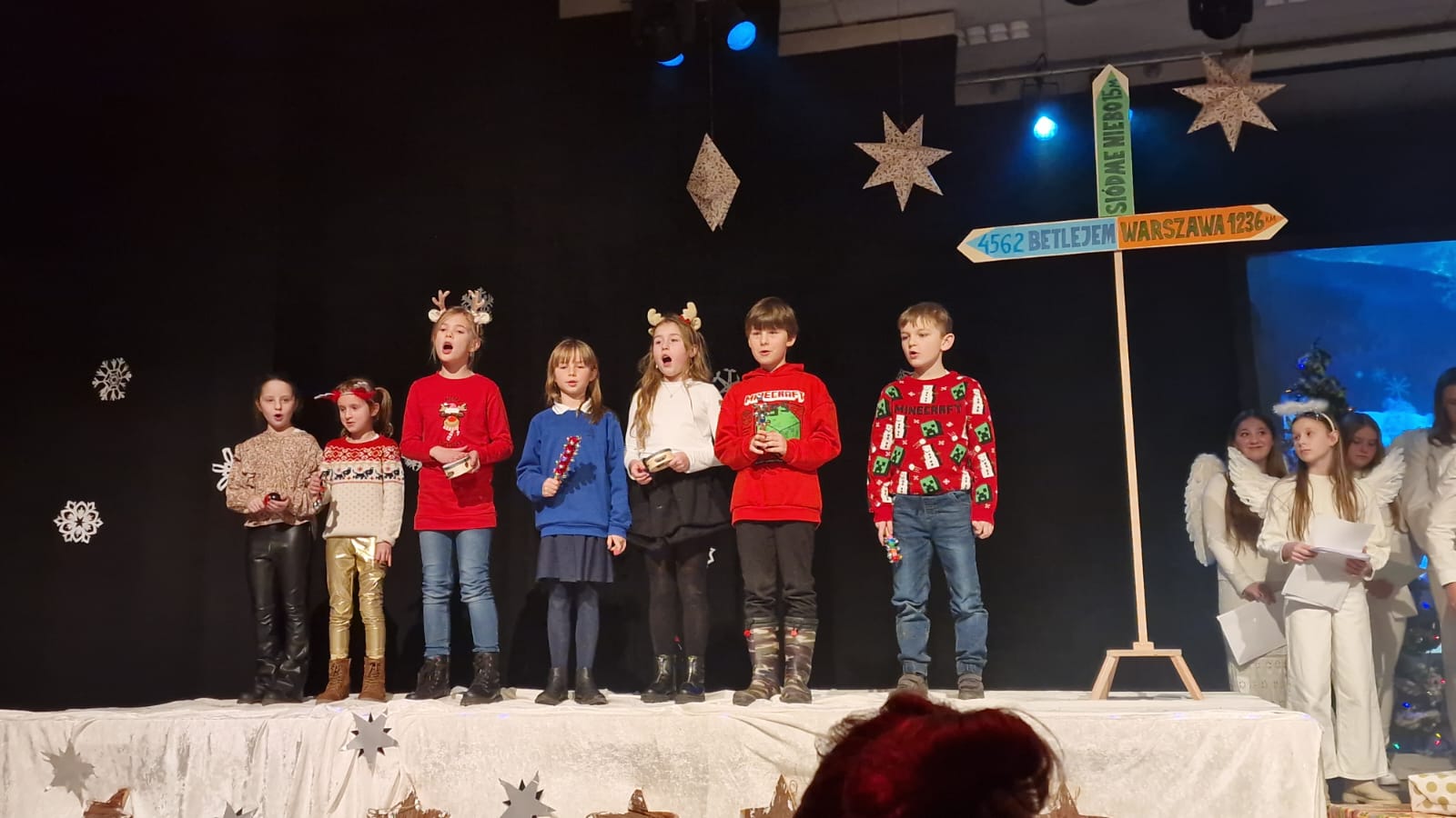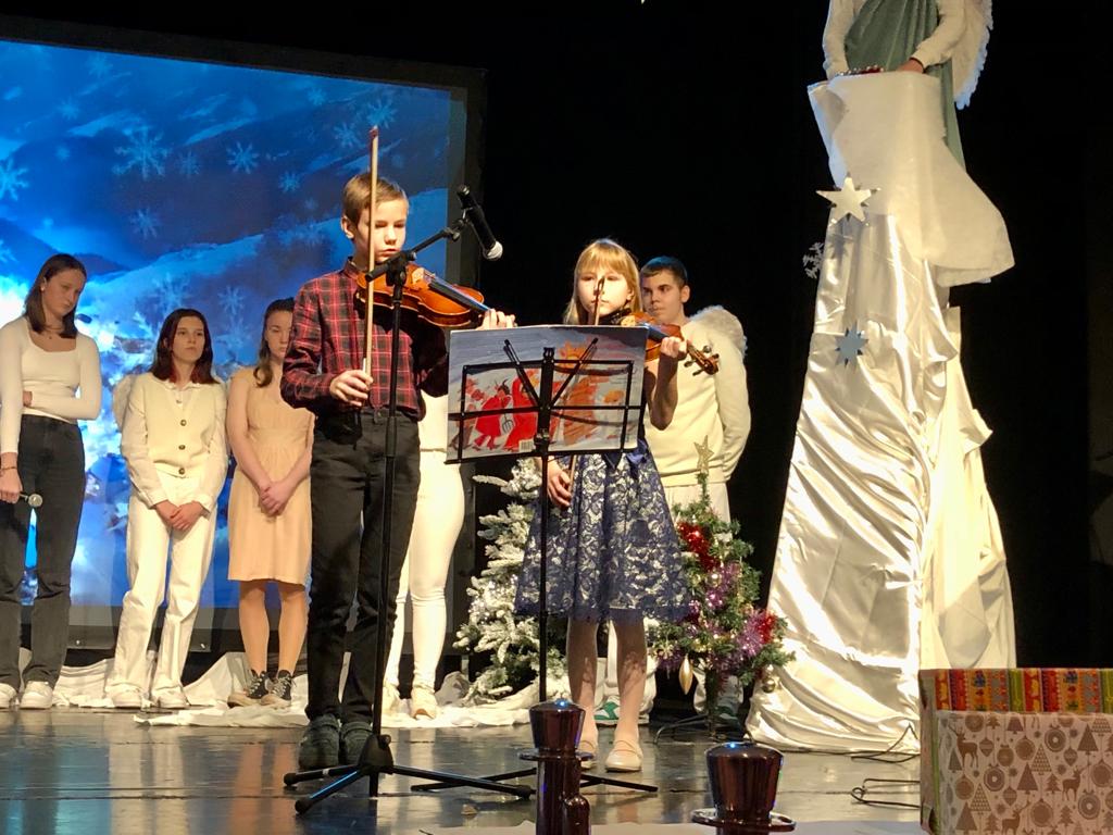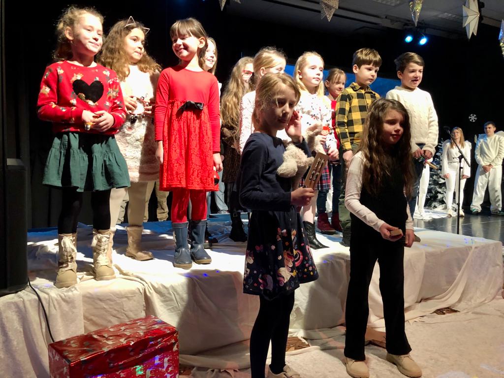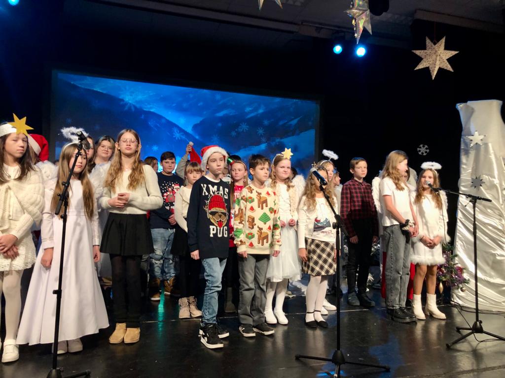 Uroku inscenizacji dodały kolędy oraz pastorałki, które napełniły wszystkich świąteczną radością i sprawiły, że poczuliśmy magię zbliżających się Świąt. Do wspólnego kolędowania włączyli się nauczyciele, a także rodzice. Nie zabrakło też występów instrumentalnych na pianinie, skrzypcach czy gitarze.