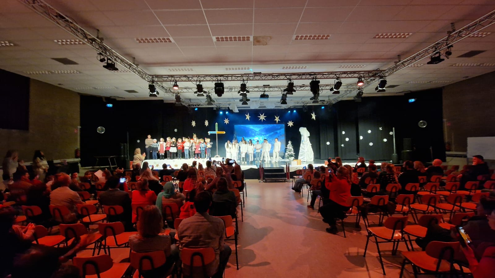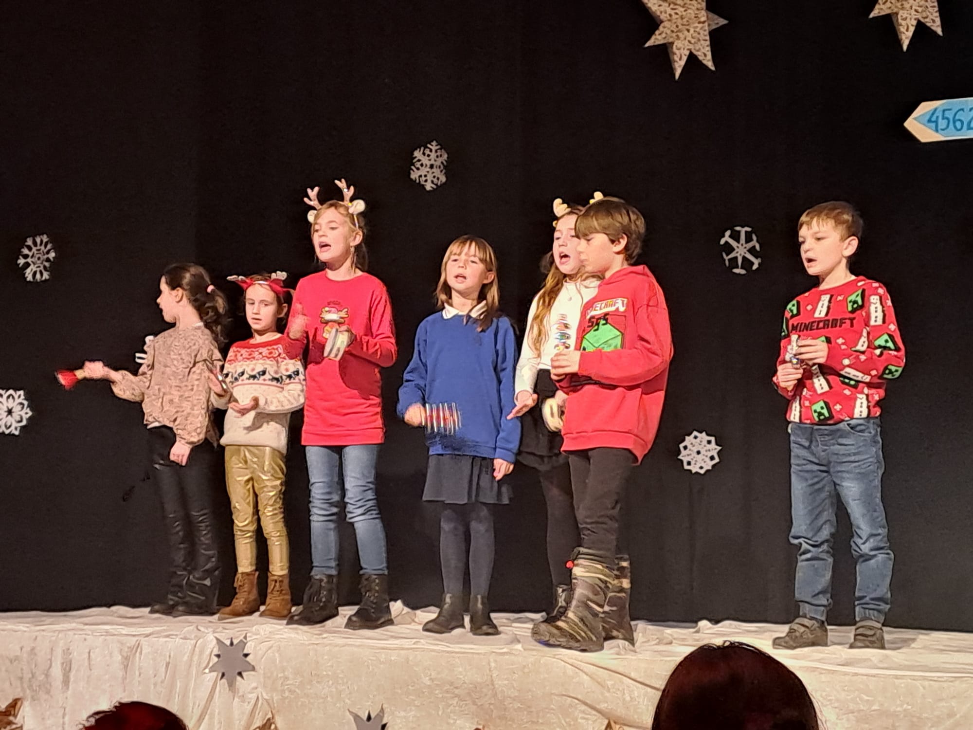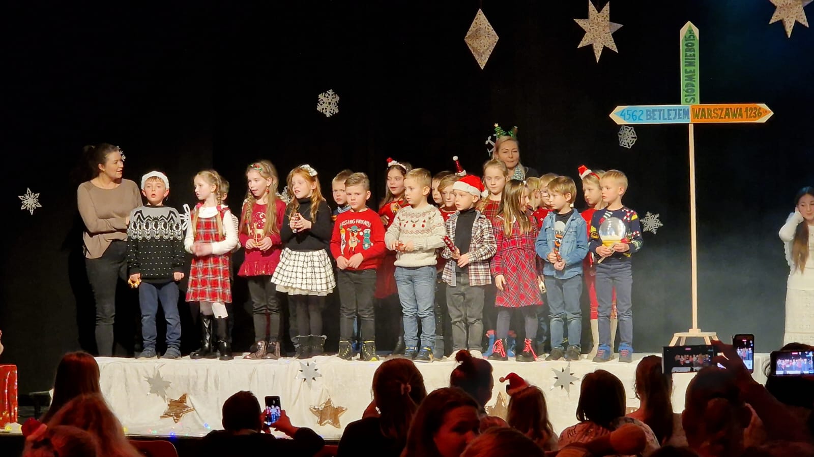 Uroku inscenizacji dodały kolędy oraz pastorałki, które napełniły wszystkich świąteczną radością i sprawiły, że poczuliśmy magię zbliżających się Świąt. Do wspólnego kolędowania włączyli się nauczyciele, a także rodzice. Nie zabrakło też występów instrumentalnych na pianinie, skrzypcach czy gitarze.