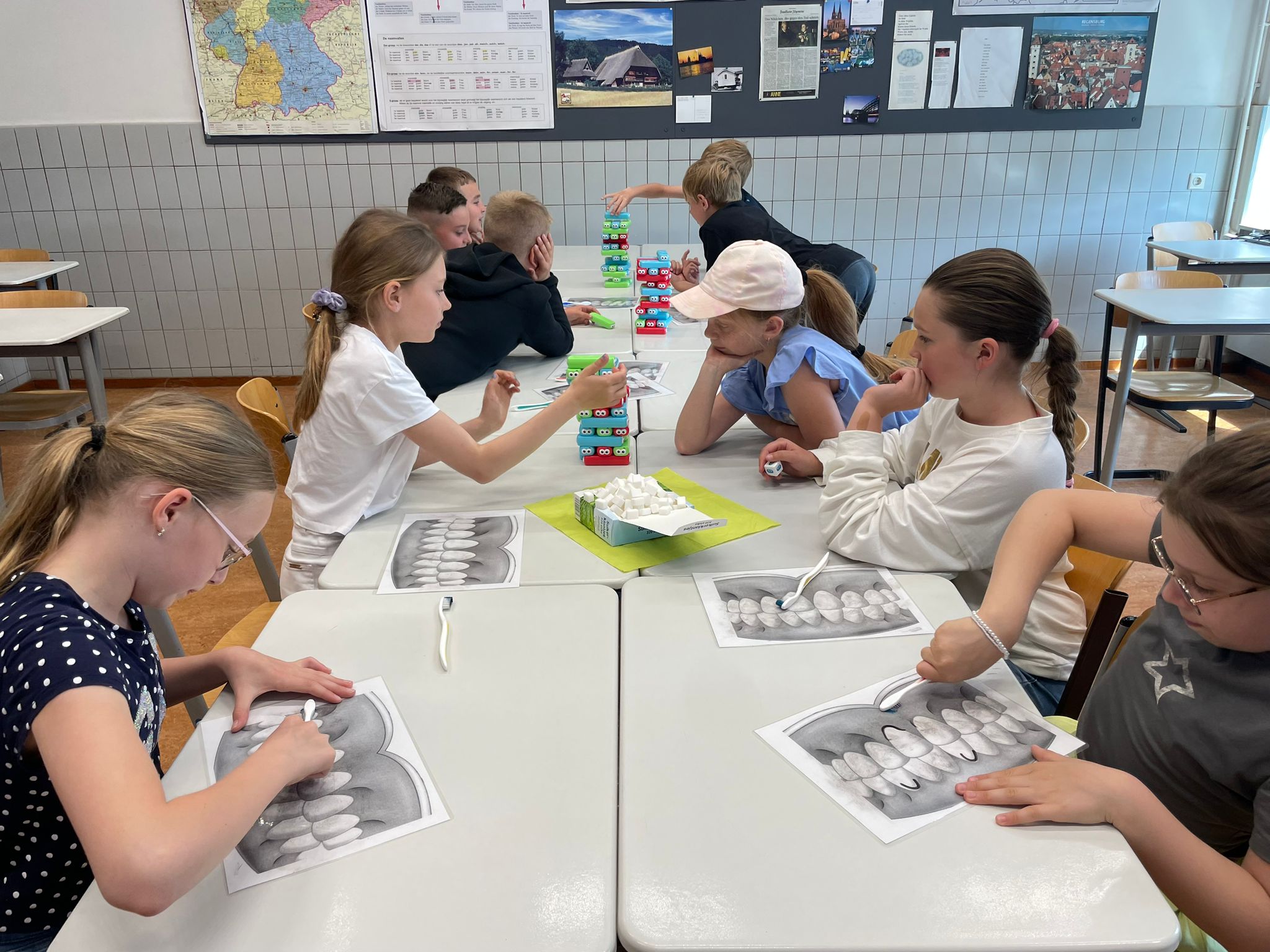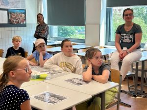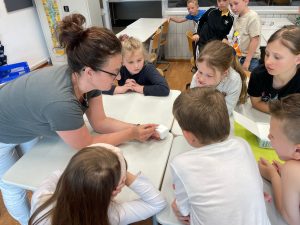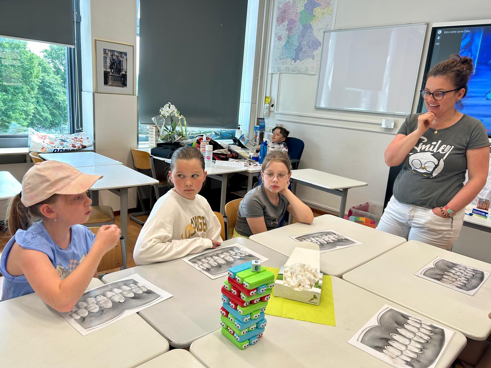 Pani stomatolog cierpliwie odpowiadała na wszystkie pytania, które zadawali uczniowie.