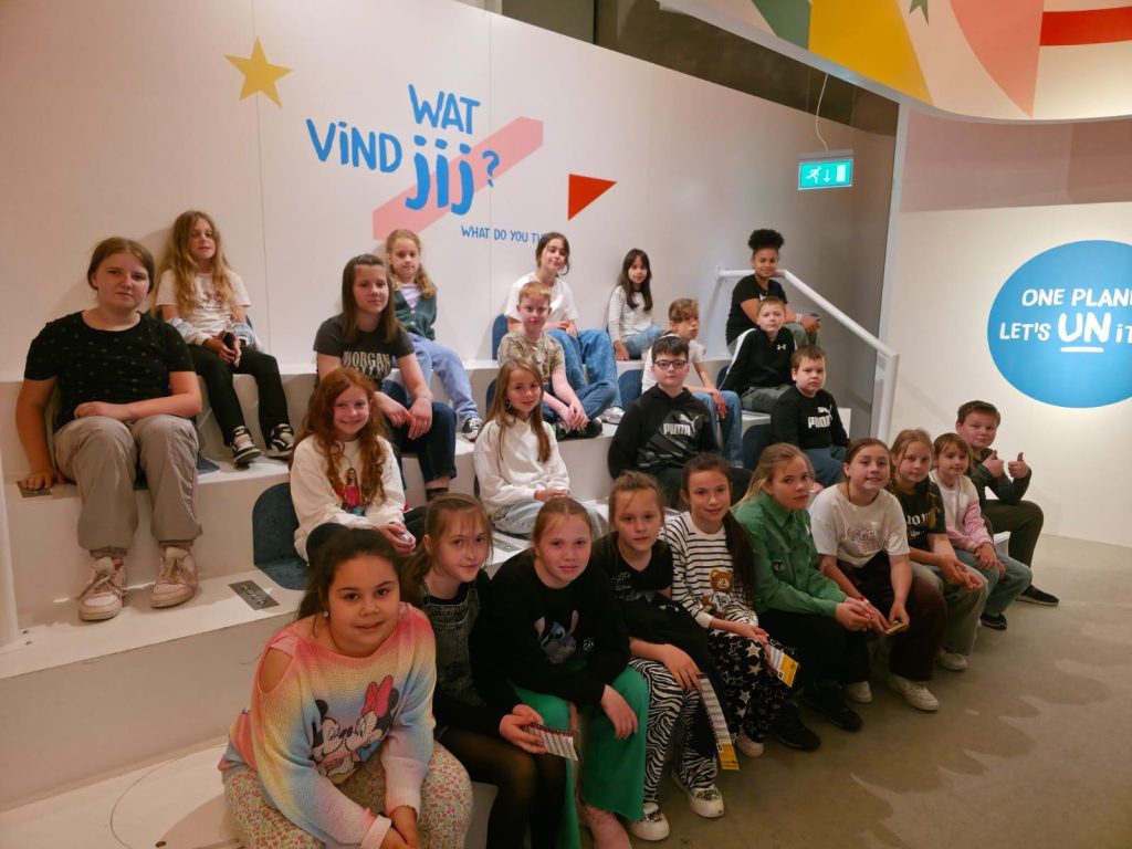 Następnie uczniowie udali się do kina Omniversum, gdzie obejrzeli film przyrodniczy „Sekrety oceanu” na największym kopułowym ekranie w Holandii. Ten imponujący pokaz przeniósł wszystkich do egzotycznego, podwodnego świata, pełnego niesamowitych stworzeń: od maleńkich koników morskich i sprytnych ośmiornic, po manty, rekiny tygrysie i ośmiornice kokosowe, odsłaniając cuda i tajemnice oceanu. Pokazał też, jak ważna jest ochrona mórz i oceanów, aby pozostały zdrowe i pełne życia.