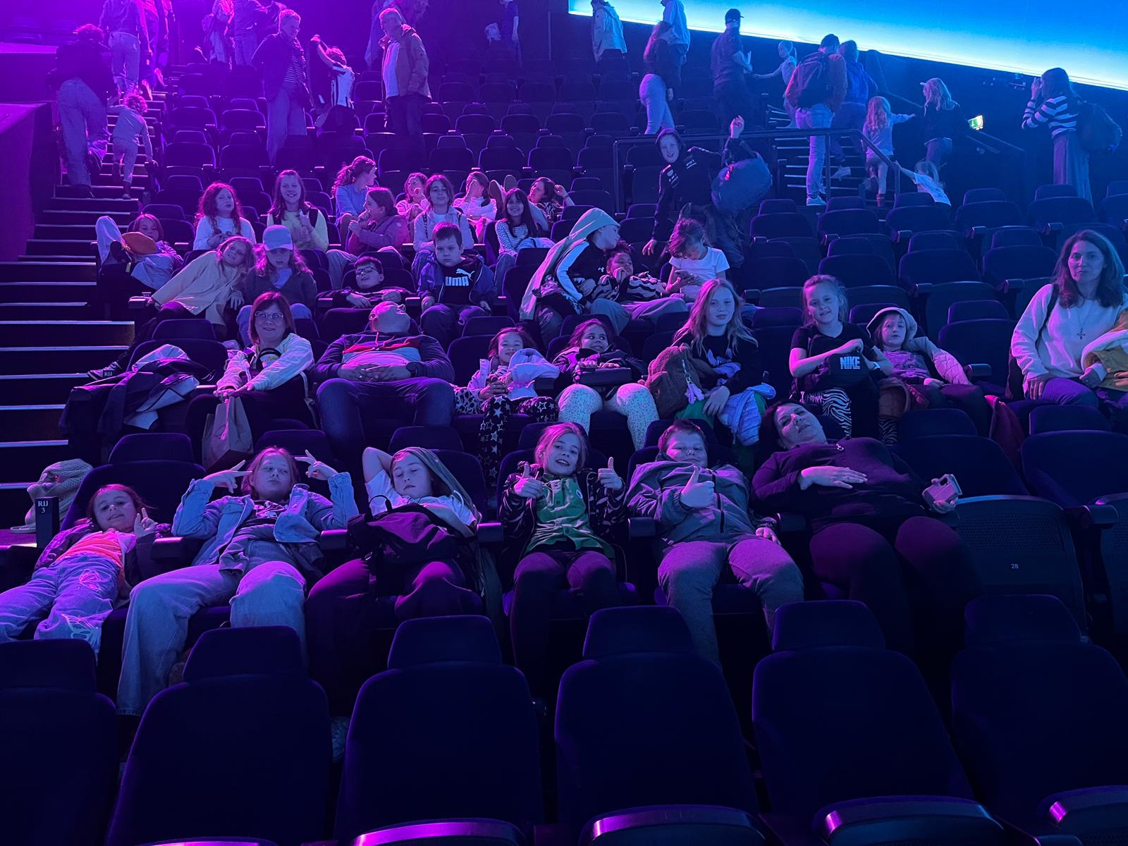Następnie uczniowie udali się do kina Omniversum, gdzie obejrzeli film przyrodniczy „Sekrety oceanu” na największym kopułowym ekranie w Holandii. Ten imponujący pokaz przeniósł wszystkich do egzotycznego, podwodnego świata, pełnego niesamowitych stworzeń: od maleńkich koników morskich i sprytnych ośmiornic, po manty, rekiny tygrysie i ośmiornice kokosowe, odsłaniając cuda i tajemnice oceanu. Pokazał też, jak ważna jest ochrona mórz i oceanów, aby pozostały zdrowe i pełne życia.