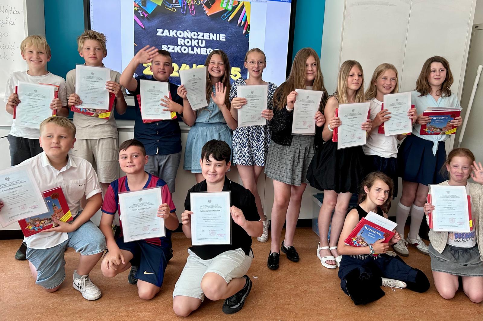 W dniach 18, 20 i 21 czerwca odbyło się uroczyste zakończenie roku szkolnego w naszej szkole. Uczniowie wszystkich grup – zarówno dziecięcych, jak i klas I–VIII – spotkali się w salach lekcyjnych z opiekunami oddziałów oraz rodzicami, aby wspólnie podsumować całoroczną pracę i świętować zakończenie kolejnego etapu edukacyjnego.