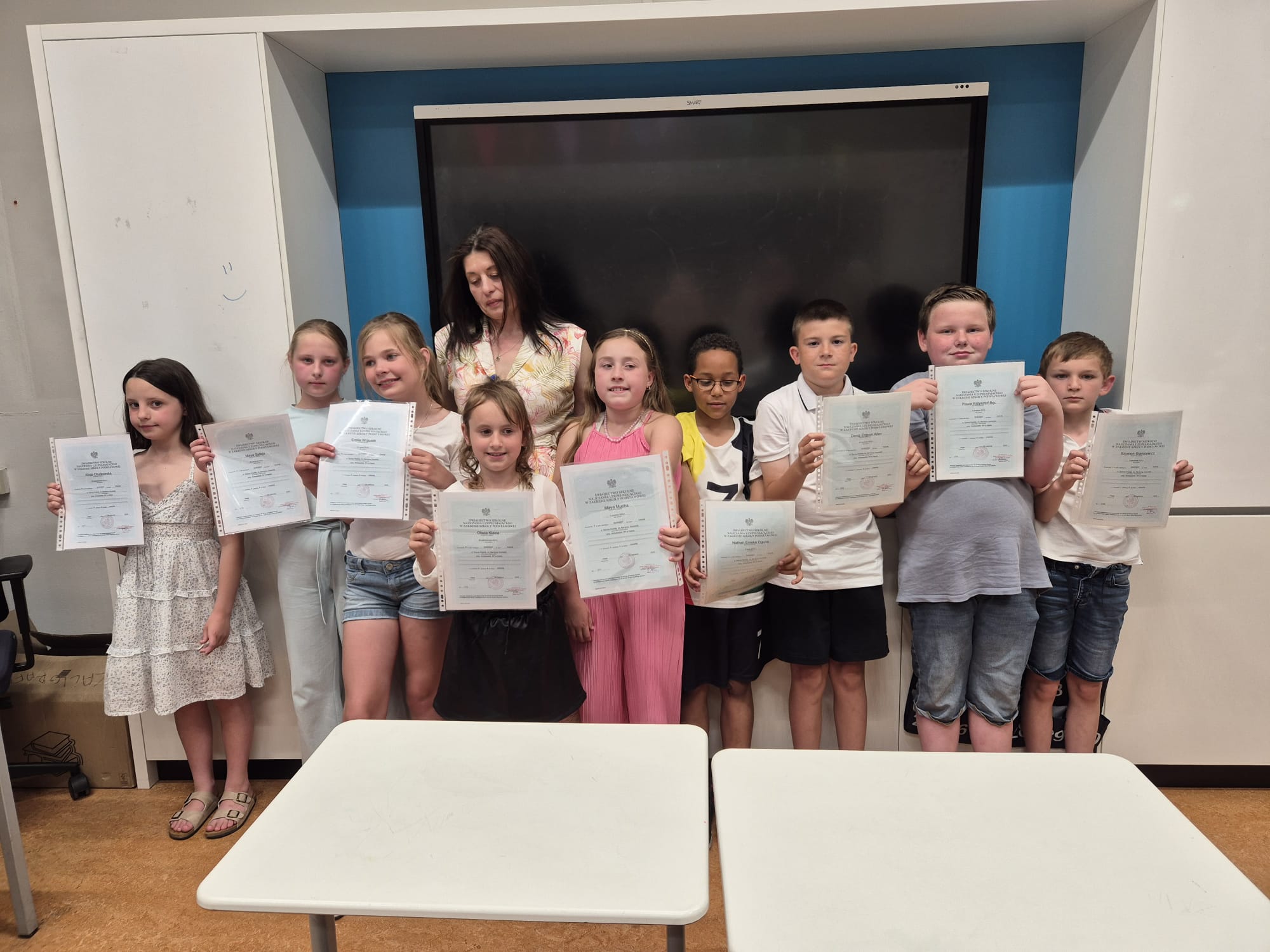 Wszystkim towarzyszyła radosna atmosfera oraz poczucie satysfakcji z dobrze wykonanej pracy. Opiekunowie oddziałów skierowali do uczniów słowa uznania, a rodzicom podziękowali za zaangażowanie, współpracę i codzienne wspieranie dzieci w nauce. Szczególne wyrazy wdzięczności trafiły do przedstawicieli klas w Radzie Rodziców.
