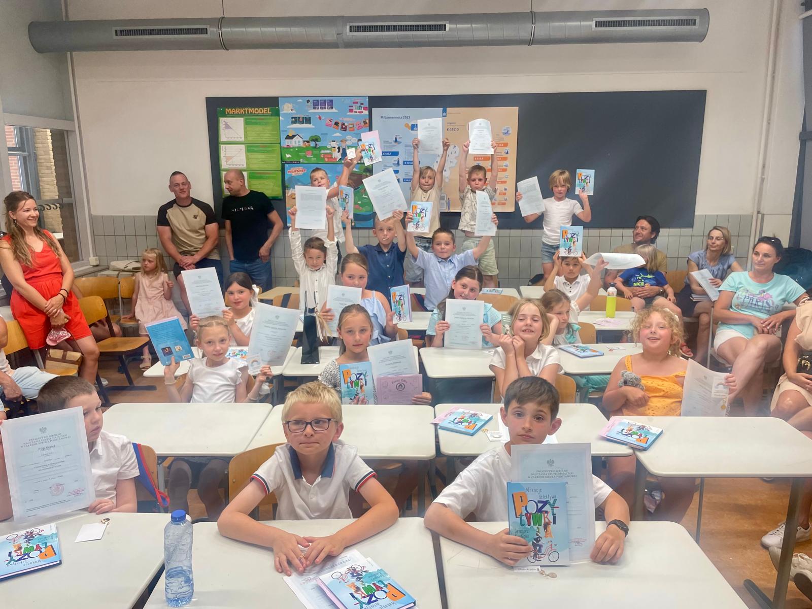 Podczas spotkań dzieci otrzymały świadectwa promocji oraz nagrody książkowe – pamiątkę za całoroczny wysiłek i zaangażowanie.