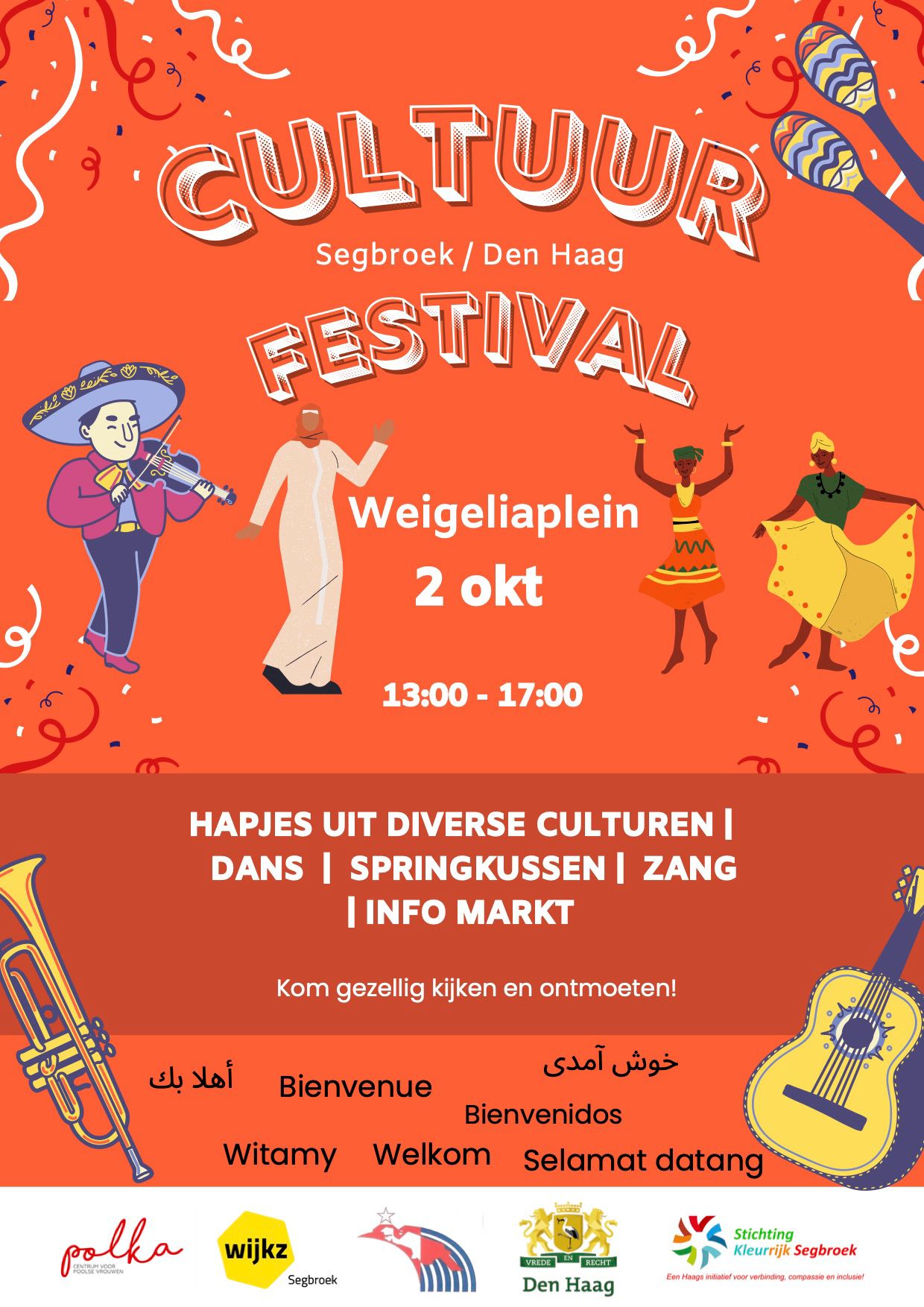 Fundacja POLKA zaprasza na Festiwal Kultur, który odbędzie się 02.10.2022 w Hadze, przy placu Weigeliaplein, w godzinach 13.00 – 17.00. Impreza ma za zadanie wyeksponować grupy kulturowe i zacieśnić współpracę między nimi. Przewidziano wiele atrakcji – występy, prezentacje, degustacje i wiele innych.